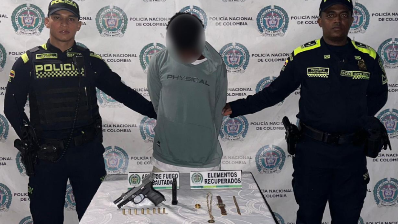 Durante el procedimiento, las autoridades incautaron un arma de fuego utilizada en el robo y se recuperaron los elementos hurtados, que incluían tres joyas de oro y un reloj.
