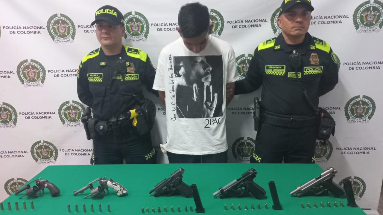 En una operación de control llevada a cabo por la Estación de Policía de la Terminal del Sur en Medellín, encontraron cinco armas de fuego en posesión de un hombre.