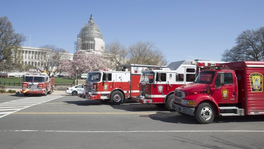 Varios vehículos de emergencia son vistos frente al Capitolio de EE.UU. en Washington. EFE