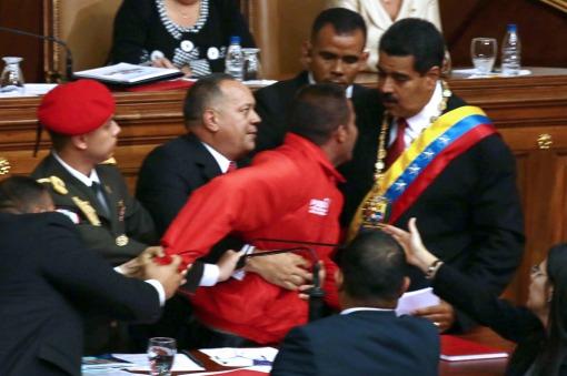 Allí se observa que el presidente de la Asamblea Nacional (AN, parlamento), Diosdado Cabello, intentó sin éxito frenar desde su estrado al joven, que llegó a pronunciar su nombre antes de que la seguridad lo redujera.