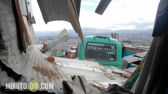 El accidente que se produjo en la diagonal 70 con calle 45 sur barrio Jerusalen- Paraíso parte alta de Ciudad Bolívar, dejó damnificadas a tres familias del sector, quienes han tenido que convivir con este automotor desde hace más de una semana cuando ocurrió el insólito hecho.
