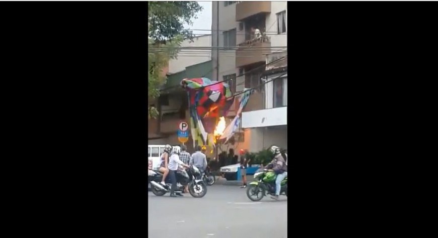 Por poco ocurre una tragedia en el barrio Laureles, cuando un globo de mecha descendió sobre la ventana de una casa, entre cables y cortinas el artículo luminoso de papel descendió envuelto en llamas.