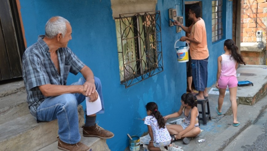 La gerente de la EDU, Margarita María Ángel Bernal, explicó que esta primera jornada de Medellín se Pinta de Vida beneficiará a 56 familias. Además, el sector será embellecido al pintar las contrahuellas de las graderías y el mural de la cancha polideportiva que tiene una extensión de 15 metros de ancho por 2 de alto.