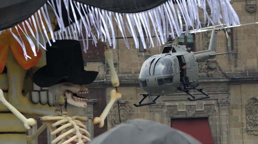 La prensa no pudo, sin embargo, ver a Daniel Craig interactuando con el helicóptero aparcado en el Zócalo, aunque este elemento sí va a ser utilizado en la cinta, puesto que en esta película casi todo es real.