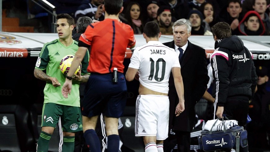 James cayó lesionado en el partido liguero del pasado sábado ante el Celta de Vigo y tras guardar reposo el domingo se sometió a unas pruebas médicas en el Hospital Sanitas La Moraleja, cuyo resultado confirman que sufre “una lesión muscular de grado 1 en el gemelo interno de la pierna derecha”.