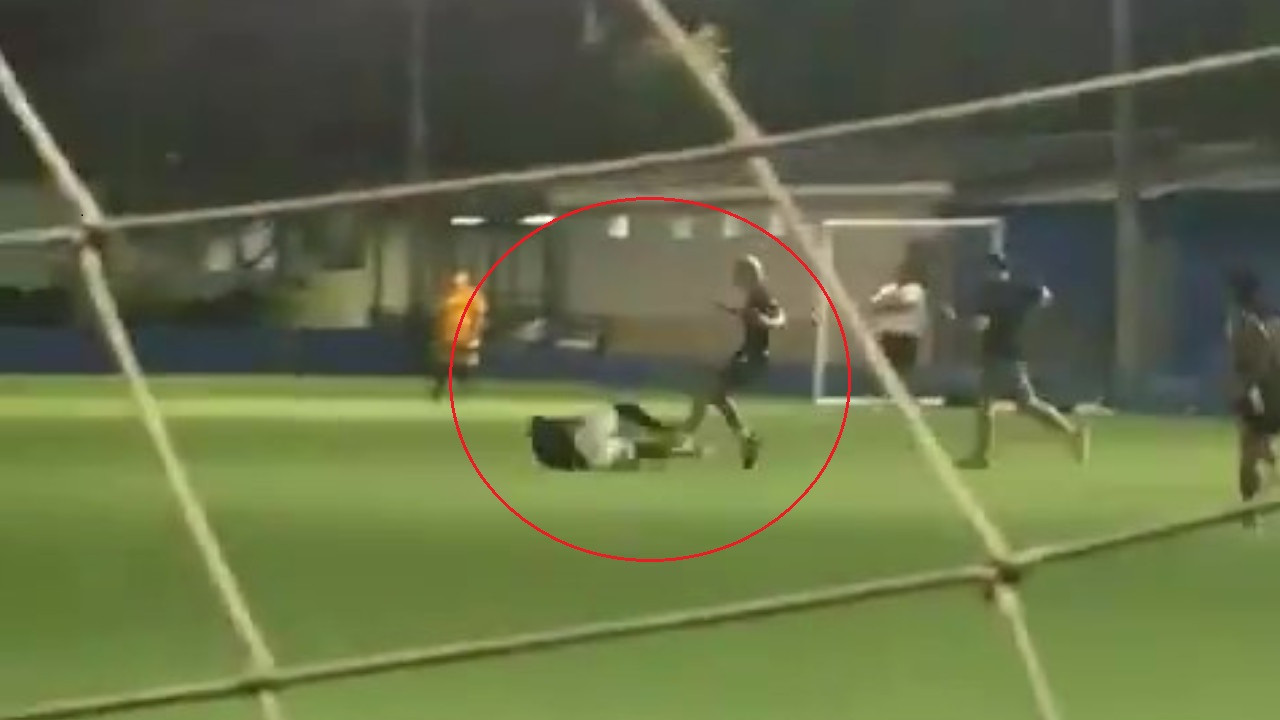 La intención que se puede notar es la de golpear al futbolista cuando cayó al suelo, sin embargo, se nota que se contuvo y evitó que el tema pasara a mayores.