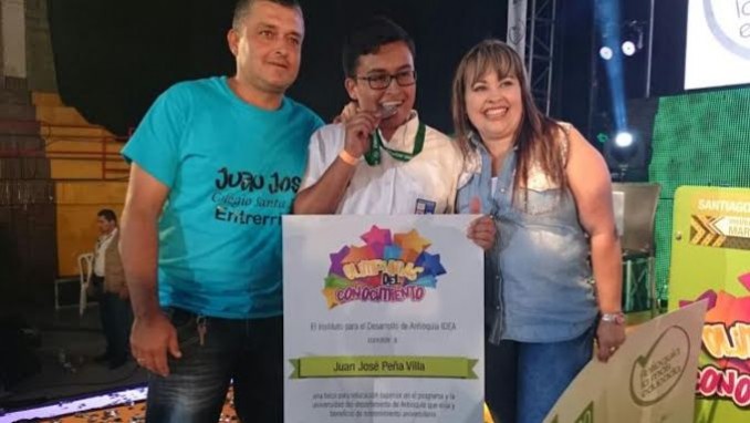 Minuto30.com-. Juan José Peña Villa, un joven del municipio de Entrerríos, ganó la final de las Olimpiadas del Conocimiento de Antioquia en el Norte.