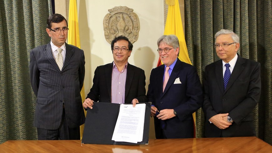 El secretario Distrital de Planeación, Gerardo Ardila, y el secretario del Consejo Directivo de la Corporación Autónoma Regional, CAR, Néstor Guillermo Franco, firmaron el Plan de Manejo de la Reserva Forestal Regional del Norte de Bogotá, Thomas van der Hammen, que plantea los parámetros a seguir para iniciar la construcción de este parque ecológico.
