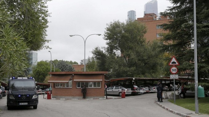 Entrada del Hospital Carlos III de Madrid, donde se encuentra ingresada la auxiliar de enfermería contagiada por ébola