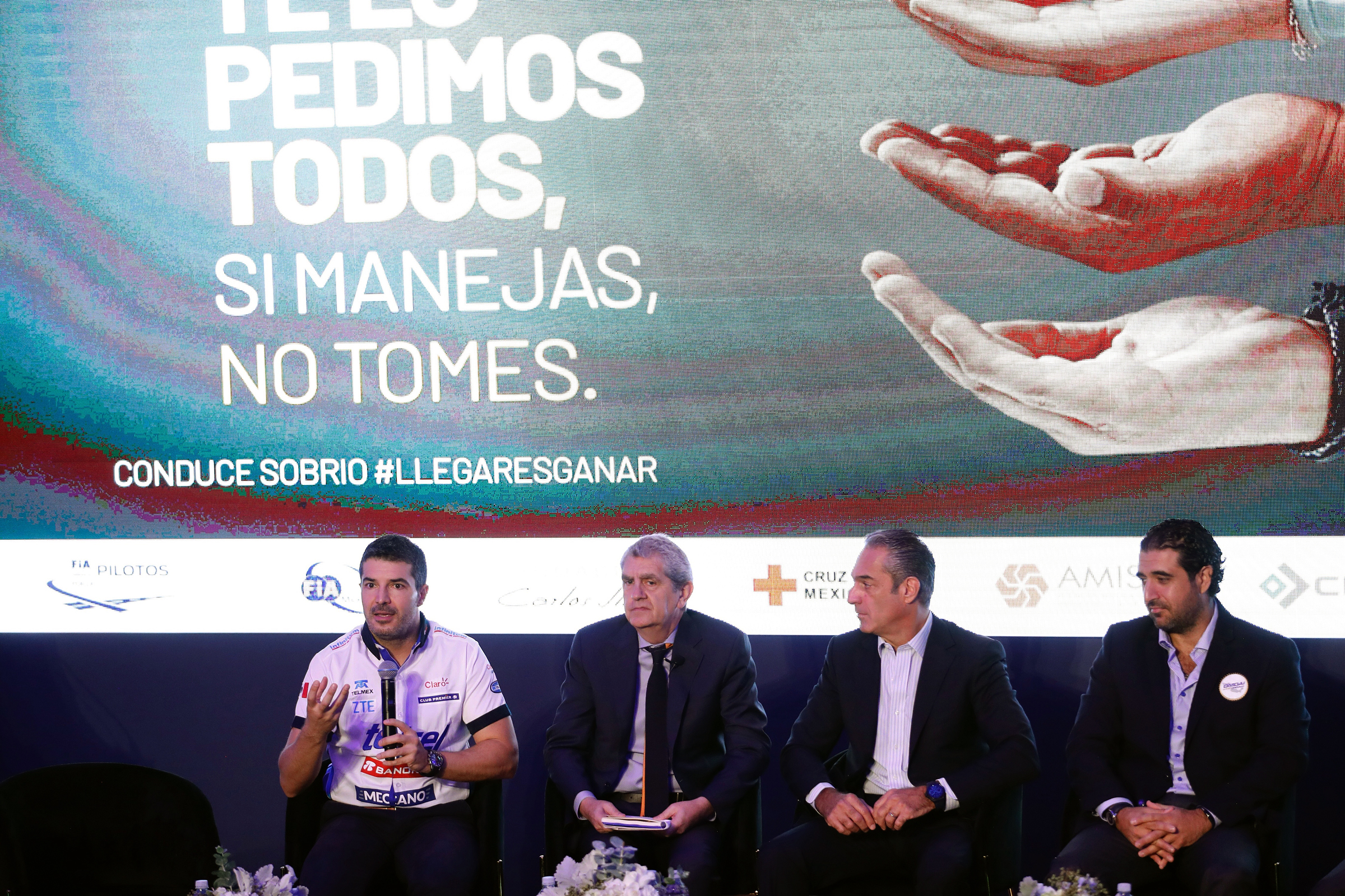 Sergio Pérez, piloto de Red Bull en la Fórmula 1, expresó de forma remota a través de un video: ”Te lo pedimos a todos, si bebes, no conduzcas”.