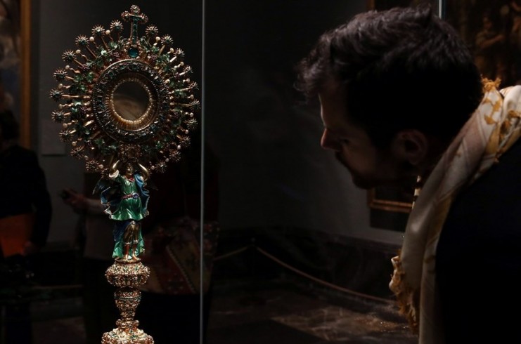 La custodia de la Iglesia de San Ignacio de Bogotá, conocida como “La Lechuga” por el verde de sus 1.485 esmeraldas, ha abandonado por primera vez Colombia para exhibirse en el Museo del Prado coincidiendo con la visita de Estado del presidente, Juan Manuel Santos.
