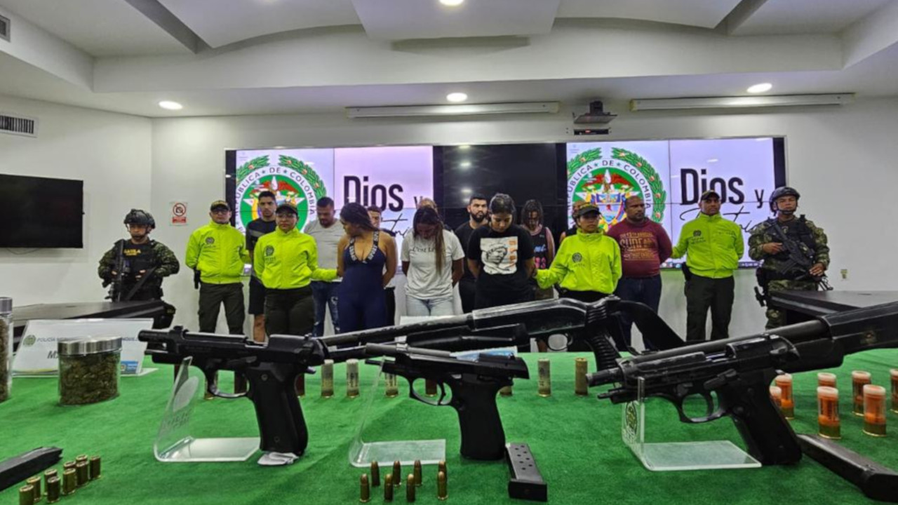 Además, se incautó una escopeta Mossberg calibre 12, una escopeta traumática, 31 cartuchos, una pistola Prieto Beretta calibre 7.65 con ocho cartuchos, una pistola traumática con 41 cartuchos, una pistola traumática Blow calibre nueve milímetros, 13.75 kilos de marihuana, ocho pastillas de éxtasis, 25 frascos de ketamina, 10 celulares, dos computadores y una tablet.