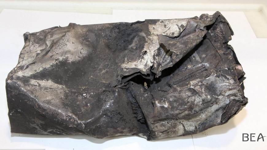 Fotografía facilitada por la Oficina de Investigaciones y Análisis (BEA) hoy, viernes 3 de abril de 2015 que muestra la segunda caja negra del avión A320 de Germanwings. EFE