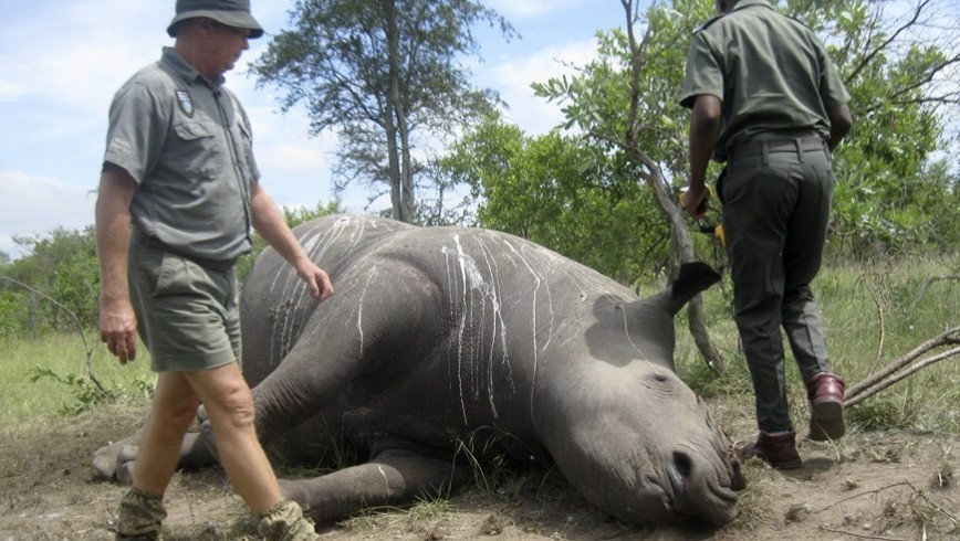 Sudáfrica vio morir en 2014 a más de 1.200 rinocerontes, 827 de ellos en esta reserva natural más extensa que Israel situada en el noreste del país, que alberga casi la mitad de los 20.000 rinocerontes de Sudáfrica, que cuenta con más del 80 por ciento de la población mundial.