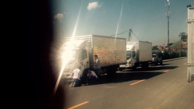 Minuto30.com-. Las Farc siguen haciéndose ‘sentir’ en el Norte de Antioquia. Ahora, además de intimidar a los transportadores, quemar vehículos y dinamitar las vías, al parecer, están recurriendo a la vieja práctica de marcar con aerosol los camiones que circulan por la Troncal hacia la Costa Atlántica, según lo denunció un ciudadano.