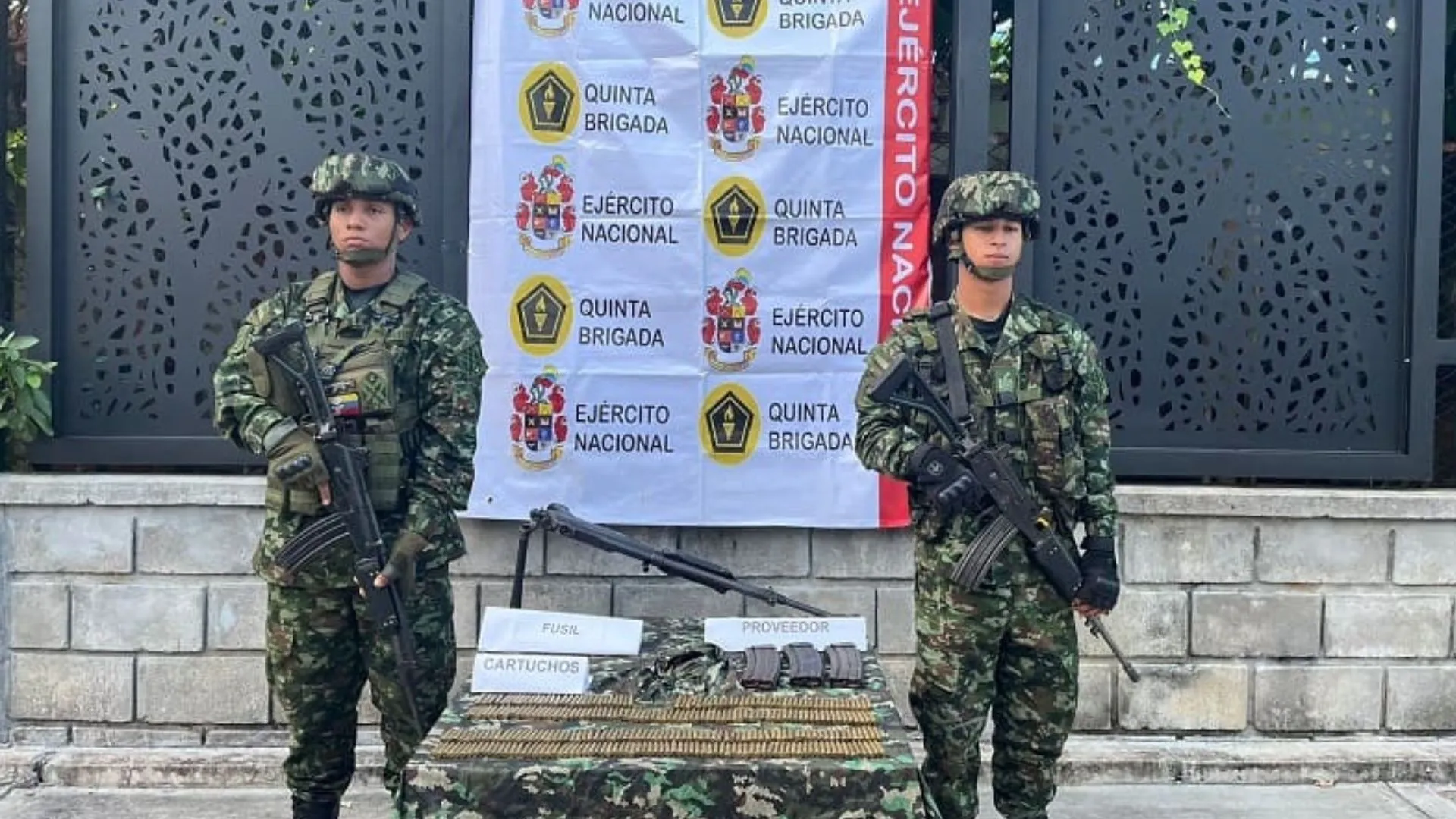 Durante la inspección, los uniformados encontraron un fusil calibre 5.56 milímetros, junto con varios proveedores para este tipo de arma y más de 290 cartuchos. Según indicaron las autoridades, estos elementos estarían destinados al uso de integrantes de grupos armados organizados que operan en esta zona del departamento.