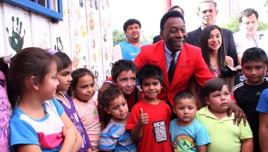 El ‘rey’ del fútbol Edson Arantes do Nascimento Pelé, visitó hoy un campamento de chabolas en La Pintana, al sur de la capital chilena, donde animó a los niños a trabajar y creer en el futuro pese a las dificultades que tengan por delante.