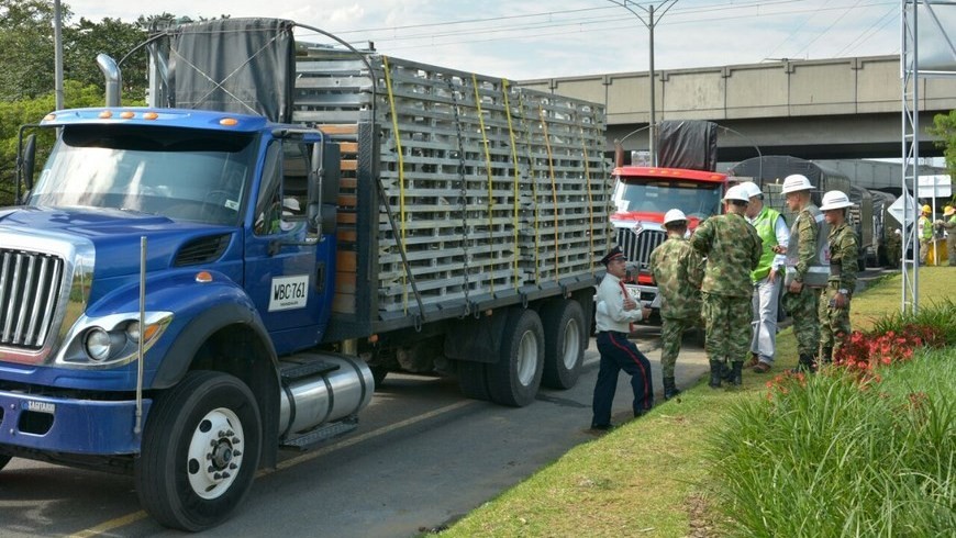La estructura de hierro llegó esta tarde a la capital antioqueña a bordo de 15 tractocamiones, procedentes de la Base Aérea de Tolemaida, ubicada en Melgar -Tolima- y acompañados por 60 hombres que se encargarán de su instalación.