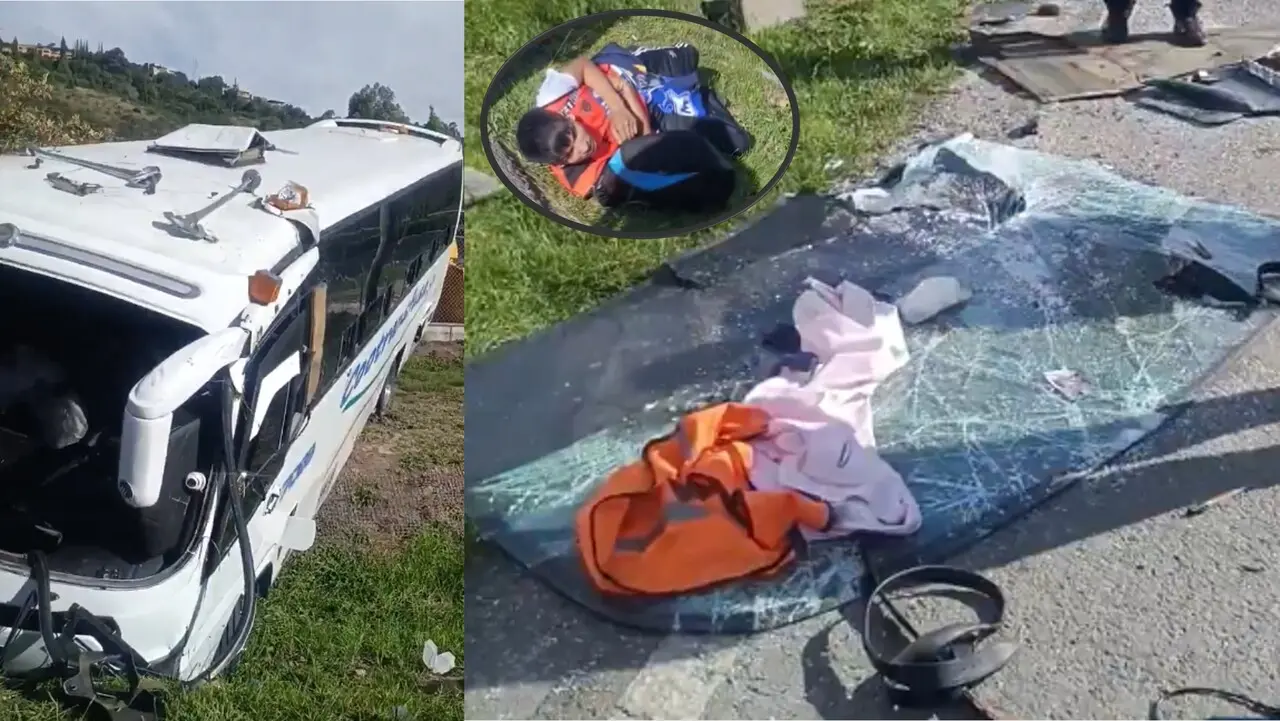 Minuto30.com .- Un fuerte accidente de tránsito se registró en la tarde de este sábado en la vía que conduce a la capital de Boyacá. Un bus de servicio público, que transportaba a un numeroso grupo de seguidores de Millonarios FC, sufrió un aparatoso incidente poco antes de llegar a su destino para el encuentro frente a Boyacá Chicó por la fecha 11 de la Liga.