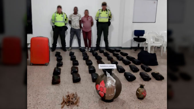 La Policía del Valle del Cauca confirmó que logró capturar a dos sujetos que pretendían traficar marihuana escondida en objetos que presentaron como elementos artesanales.