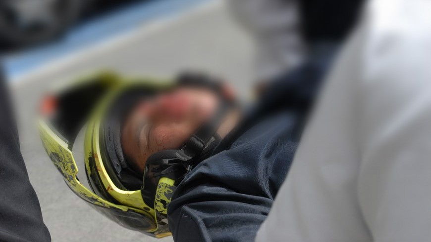 El conductor trató de esquivar el crater pero perdió el equlibrio. Entonces rodó varios metros y quedó mal herido. Las fotos lo dicen todo.