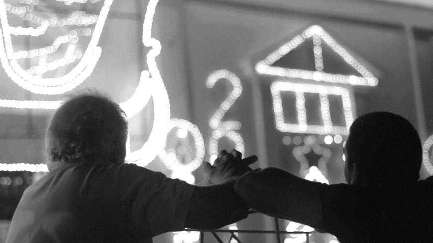 “Las luces”, de Manuel Abramovich y Juan Manuel Renau, también escapa de las imágenes más clásicas de la realidad argentina, conocida por su dinamismo y su verborrea, y se detiene a contemplar a un padre y a un hijo, Jorge y Jorgito Gervasi, en su esmerado trabajo por instalar un barroco alumbrado de Navidad austral en un edificio.