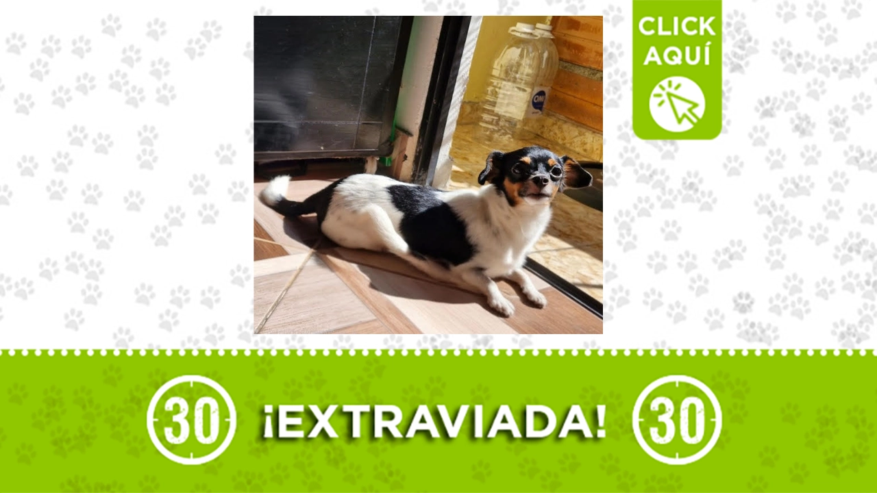 Lupita se perdió en la vereda La Gabriela de San Javier el lunes 26 de enero. Es una perrita pequeña, de 5 años, de color blanco y negro, y de raza pincher–chihuahua, lo que facilita su identificación.