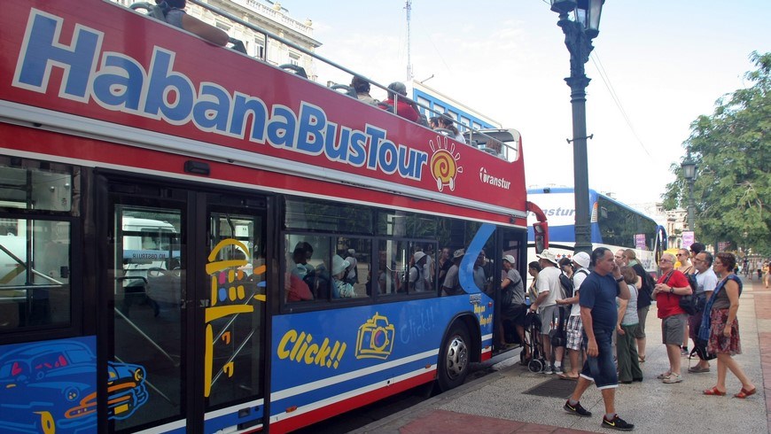 Turistas abordan un autobús turístico en una calle de La Habana, donde se celebra la Feria Internacional de Turismo en Cuba. EFE/Archivo