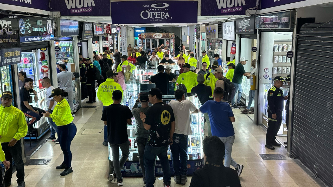 Más de 250 uniformados de diversas especialidades, junto con funcionarios de las secretarías de Seguridad y Convivencia y Movilidad, se desplegaron en la zona para inspeccionar locales dedicados a la compra y venta de celulares.
