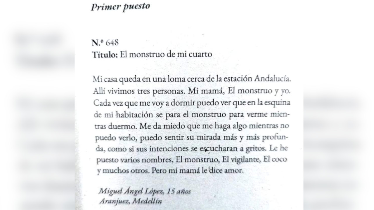 El cuento del menor fue premiado en el concurso de 100 palabras organizado por el Metro de Medellín y Comfama.