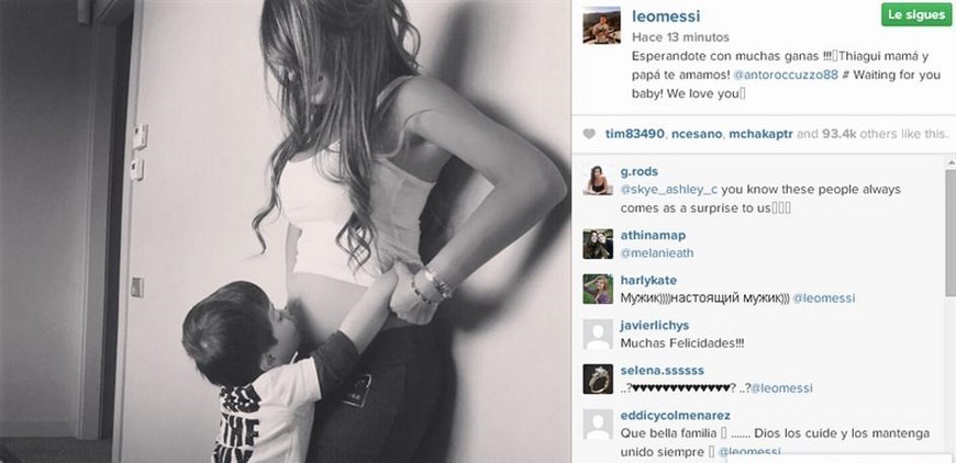 Messi confirmó que su mujer, Antonella Roccuzzo está embarazada nuevamente. “Esperandote con muchas ganas. ¡Thiagui, mamá y papá te amamos! @antoroccuzzo88 # Waiting for you baby! We love you”, fue su mensaje en Instagram.