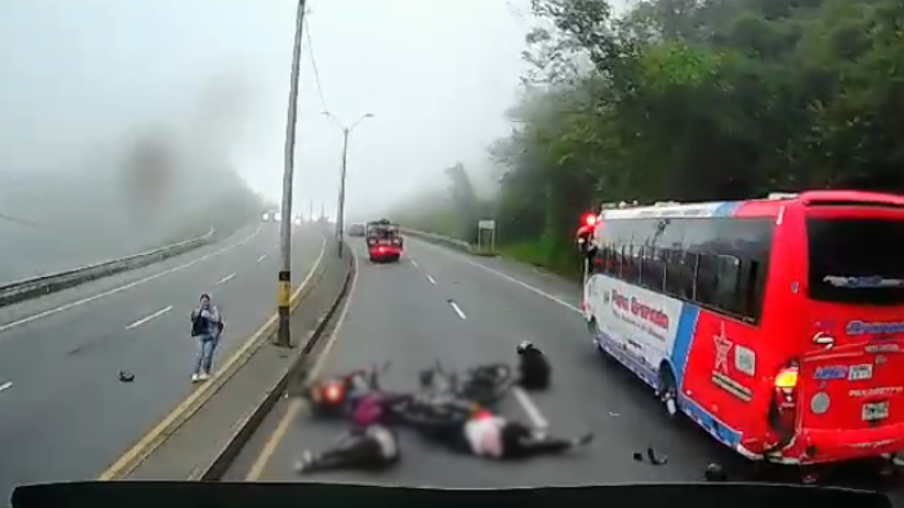 En la mañana de este viernes, 22 de noviembre, se presentó un accidente de tránsito tras la colisión entre tres motociclistas en la Autopista Medellín-Bogotá, en el tramo que conecta con El Santuario.