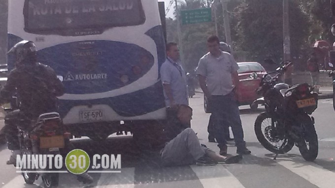 Minuto30.com .- Una moto chocó contra una buseta que cubre la Ruta de la Salud, a la altura de la calle Colombia con la carrera 73, en el sector del Estadio.