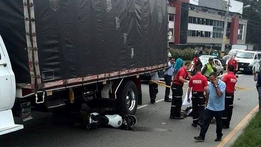 Un aparatoso accidente se registró la tarde de este jueves en la variante de Caldas, cuando un motociclista quedó bajo las llantas de un camión, hecho que provocó su deceso inmediato.