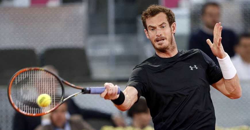 GRA719. MADRID, 06/05/2015.- El tenista escocés Andy Murray, devuelve una bola al alemán Philipp Kohlschreiber, durante el partido de la segunda ronda del torneo Mutua Madrid Open, que se celebra estos días en la Caja Mágica. EFE/Alberto Martín.