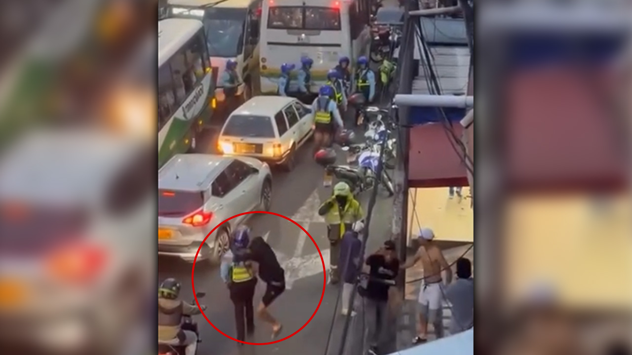 En el video se puede ver como un guarda de tránsito es golpeado por la espalda y tirado al piso de forma agresiva, mientras que policías y otros agentes forcejeaban con otras personas.