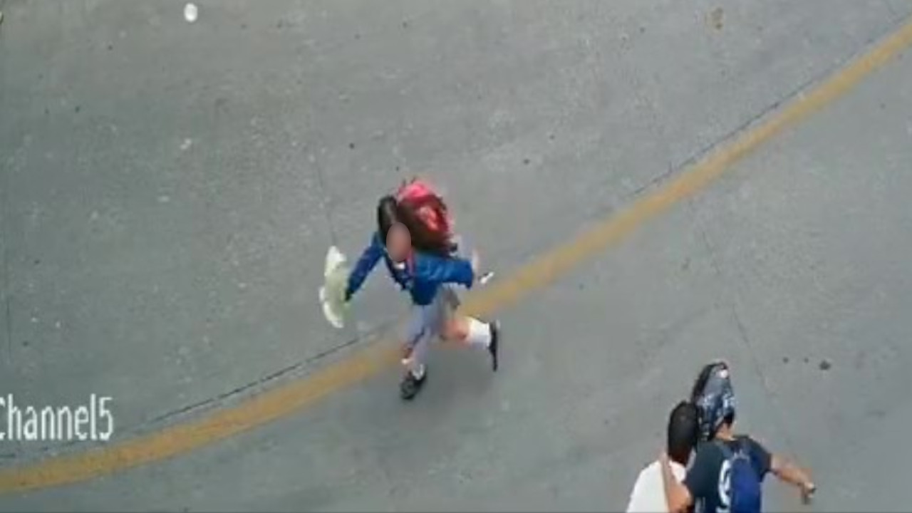 La amiguita con la niña con la que el menor caminaba no tuvo más que salir corriendo despavorida por la que era una increíble acción para ellos.