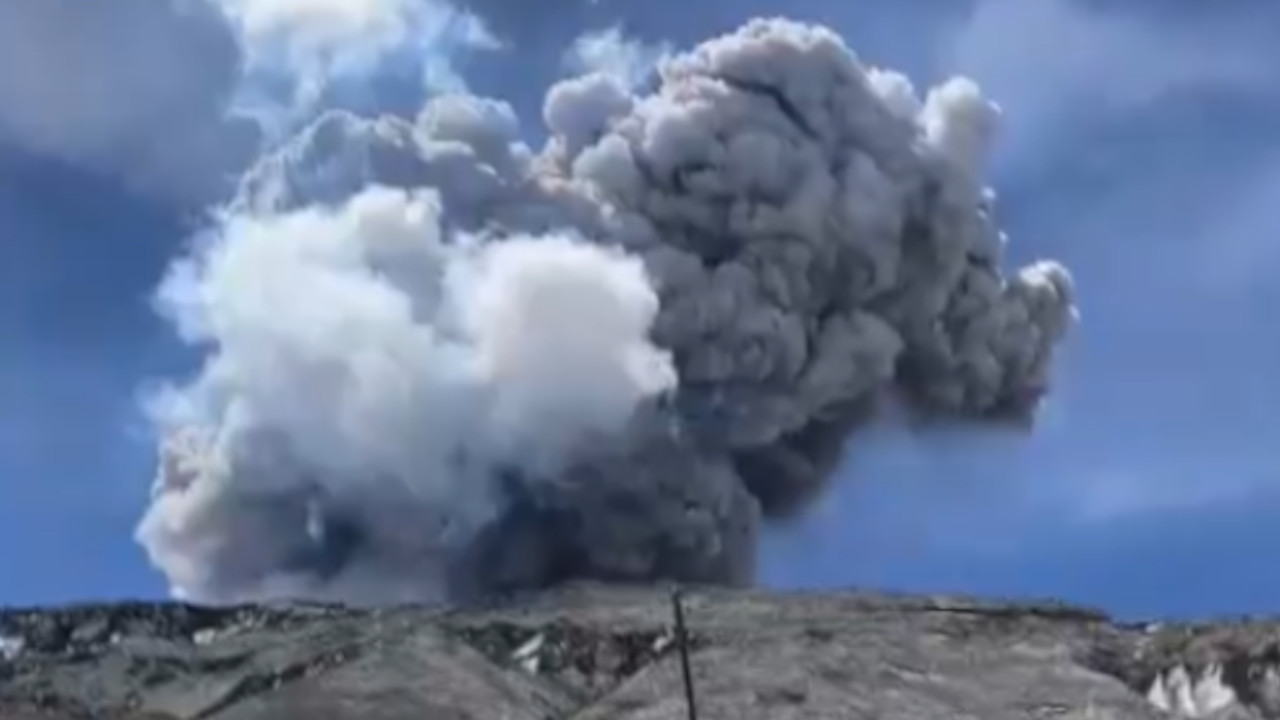 Las imágenes muestran cómo una nube de ceniza se eleva desde el cráter del volcán, dispersándose en el cielo.