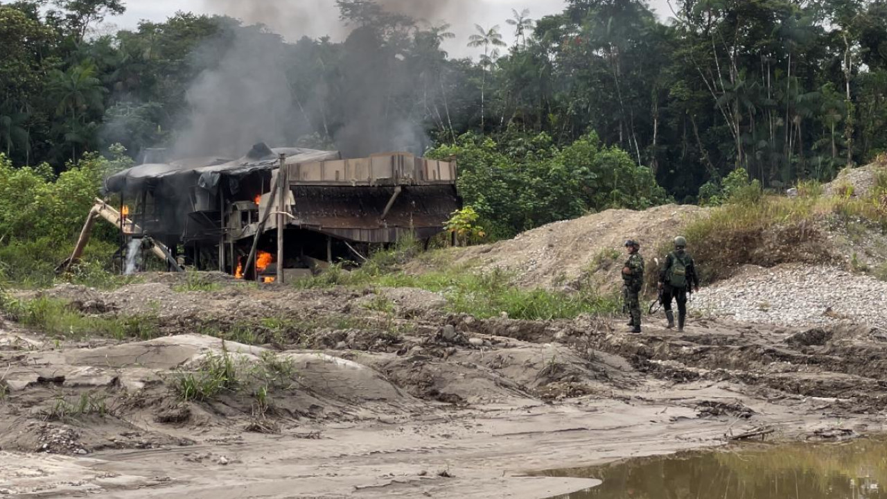 En lo corrido del 2024 ya son 11 las unidades de producción minera intervenidas. Allí las Fuerzas Militares, junto a la Policía y la Fiscalía han inutilizado ocho dragas, 10 retroexcavadoras, cuatro dragones y 37 motores empleados para la extracción de oro.