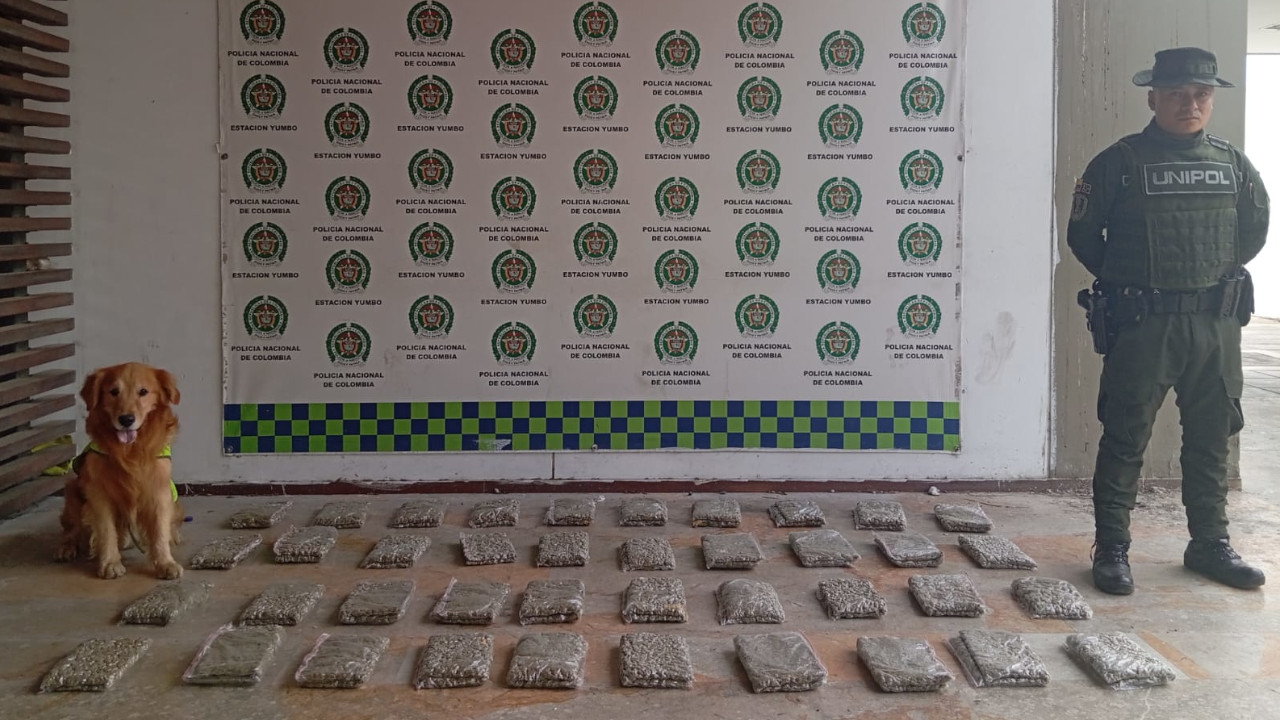 Gracias al olfato del perrito llamado Toro, la Policía logró la incautación de más de 20 kilos de marihuana tipo cripy en Cali.