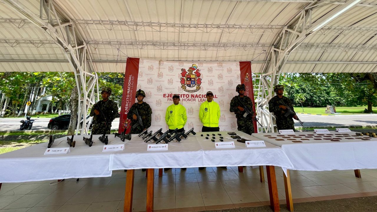 Este arsenal, atribuido a la Subestructura Juan de Dios Úsuga del Clan del Golfo, incluía 5 fusiles, 10 pistolas, 6 granadas de 40 mm, 16 proveedores y más de 300 unidades de munición de diversos calibres.