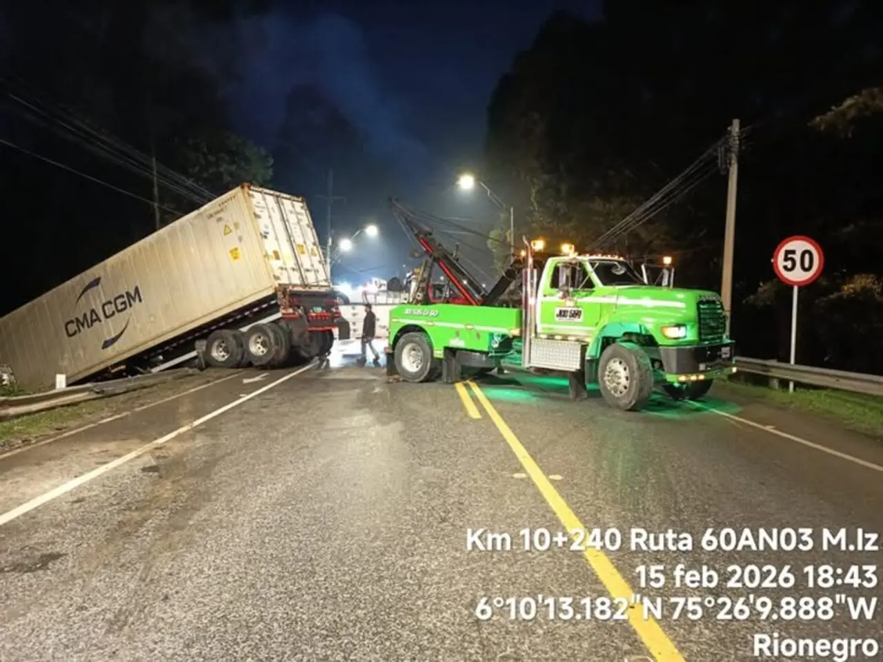 Minuto30.com .- Luego de una compleja jornada para la movilidad en Rionegro, se conoció que sobre las 7:30 de la noche fue reabierta la vía T Aeropuerto – Llanogrande. El cierre total se mantenía a la altura del restaurante Marmoleo (km 10+240), donde personal especializado adelantaba maniobras de rescate del vehículo de carga pesada.