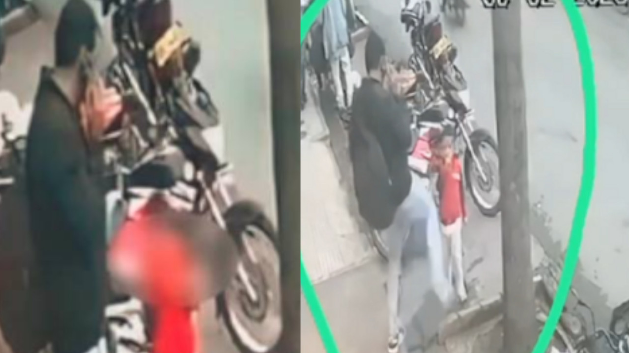 Las imágenes, captadas por una cámara de seguridad, muestran cómo el menor se acercó a un hombre que hablaba por teléfono, quien sin mediar palabra le propinó una fuerte patada en el estómago.
