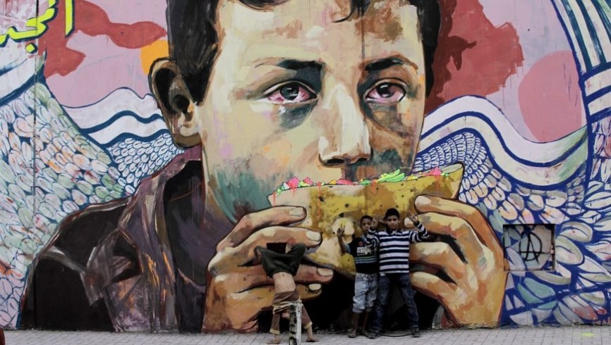 Fotografía facilitada por el Instituto del Mundo Árabe de la la obra “Glory to the unidentified”, de los egipcios Ammar Abo Bakr, Mo Mahmoud ‘Khaled’, sobre un muro del El Cairo, que forma parte de la exposición “HIP HOP. Del Bronx a las calles árabes”. EFE