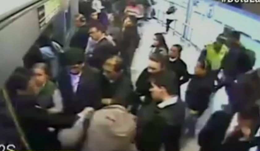 Minuto30.com-. En las cámaras de seguridad de Transmilenio quedó registrado el momento en que un hombre golpeó a un presunto ladrón que, al parecer, le robó su maleta al salir de uno de los articulados.