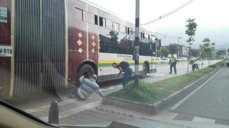 Minuto30.com-. Un incidente de tránsito se reportó hace pocos minutos en uno de los carriles exclusivos del Metroplús. Un peatón quedó atrapado bajo un bus articulado cerca a las llantas que unen los vehículos.