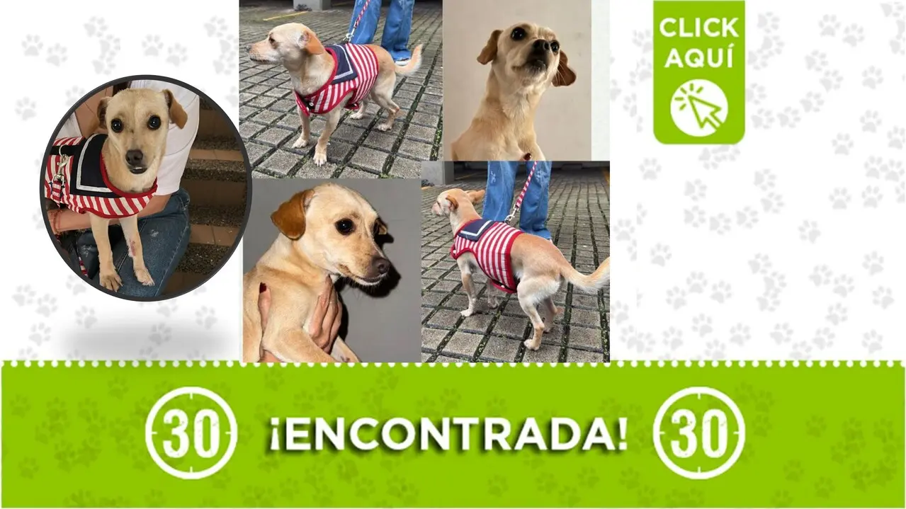 La mascota no portaba arnés ni collar, pero se ve bien cuidada y es muy cariñosa; además come cuido, por lo que se presume tendría familia.