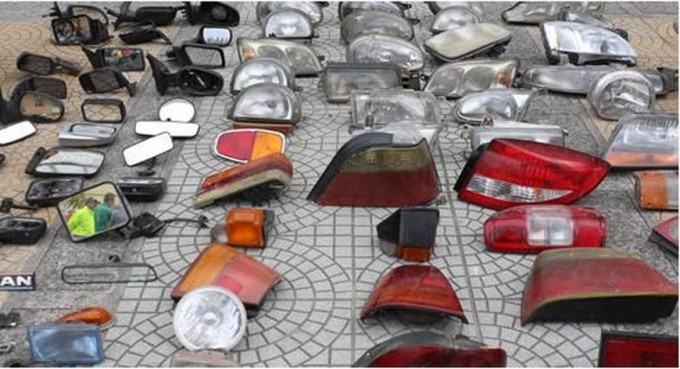 En total fueron incautados 11 stops, 45 espejos, 19 farolas, cinco frontales para radio y 15 emblemas de diferentes marcas.