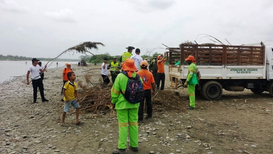 Minuto30.com-. La Policía Nacional en Caucasia, en coordinación con las Empresas Públicas Caucasia, la Defensa Civil y jóvenes de la comunidad, lideró la campaña ambiental ‘Conservar y proteger las fuentes hídricas es preservar el futuro de nuestros hijos’, a través de la cual se realizó una labor de limpieza, embellecimiento y descontaminación en la rivera del río Cauca, en el sector del puente Lleras Camargo, denominado Villa Cabañitas.