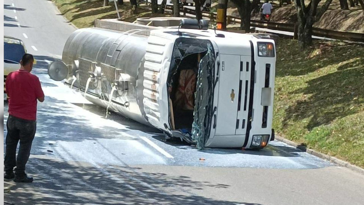 En este accidente el camión cisterna terminó volcado, el vehículo iba cargado de leche.